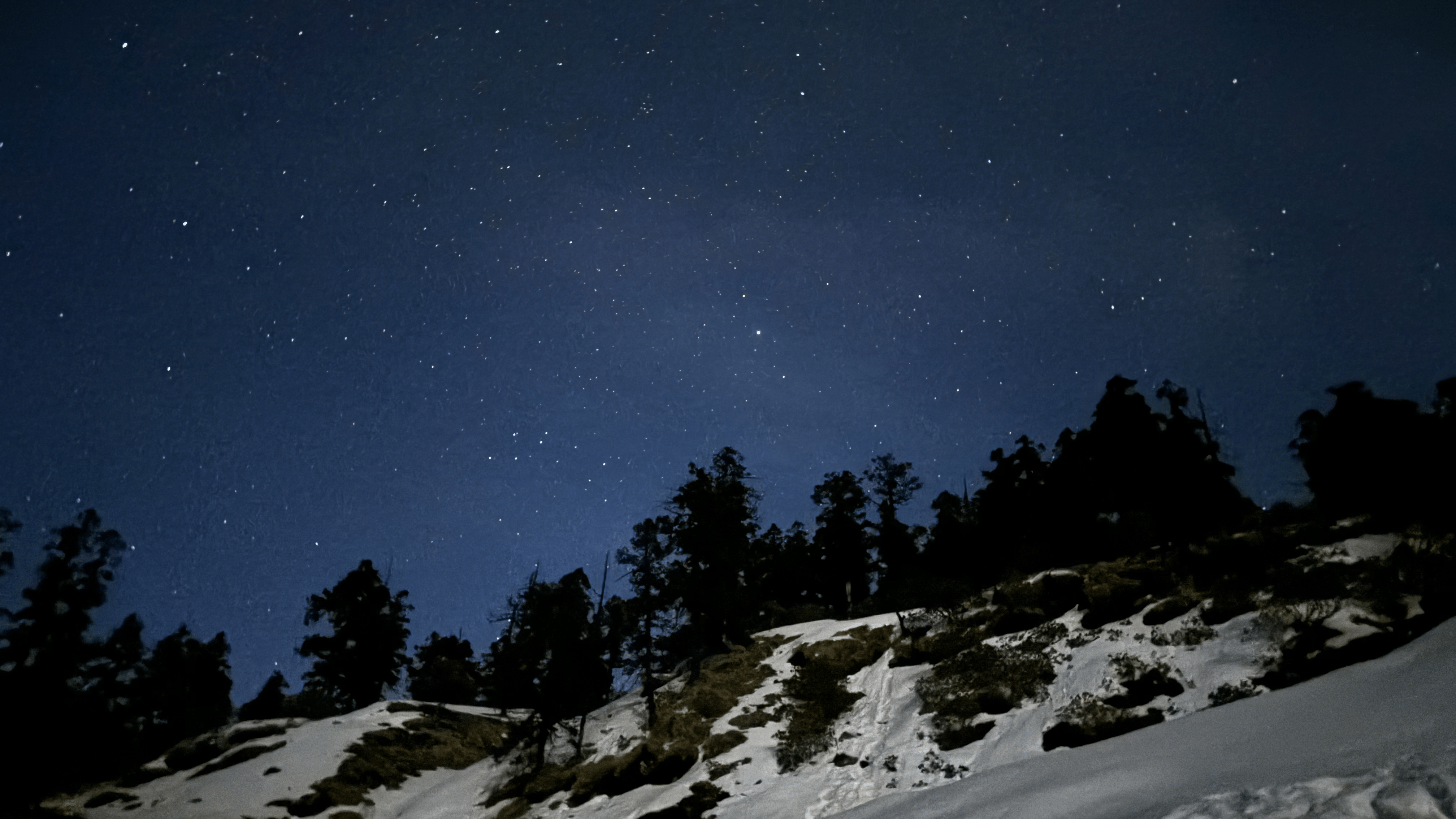 So, there we were, starting our trek in the dead of night. But guess what? The moon was showing off, casting this mystical glow on everything around us. The snow looked like it was studded with diamonds, shimmering under the moonlight.